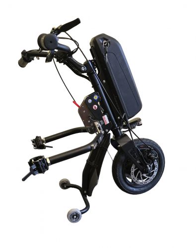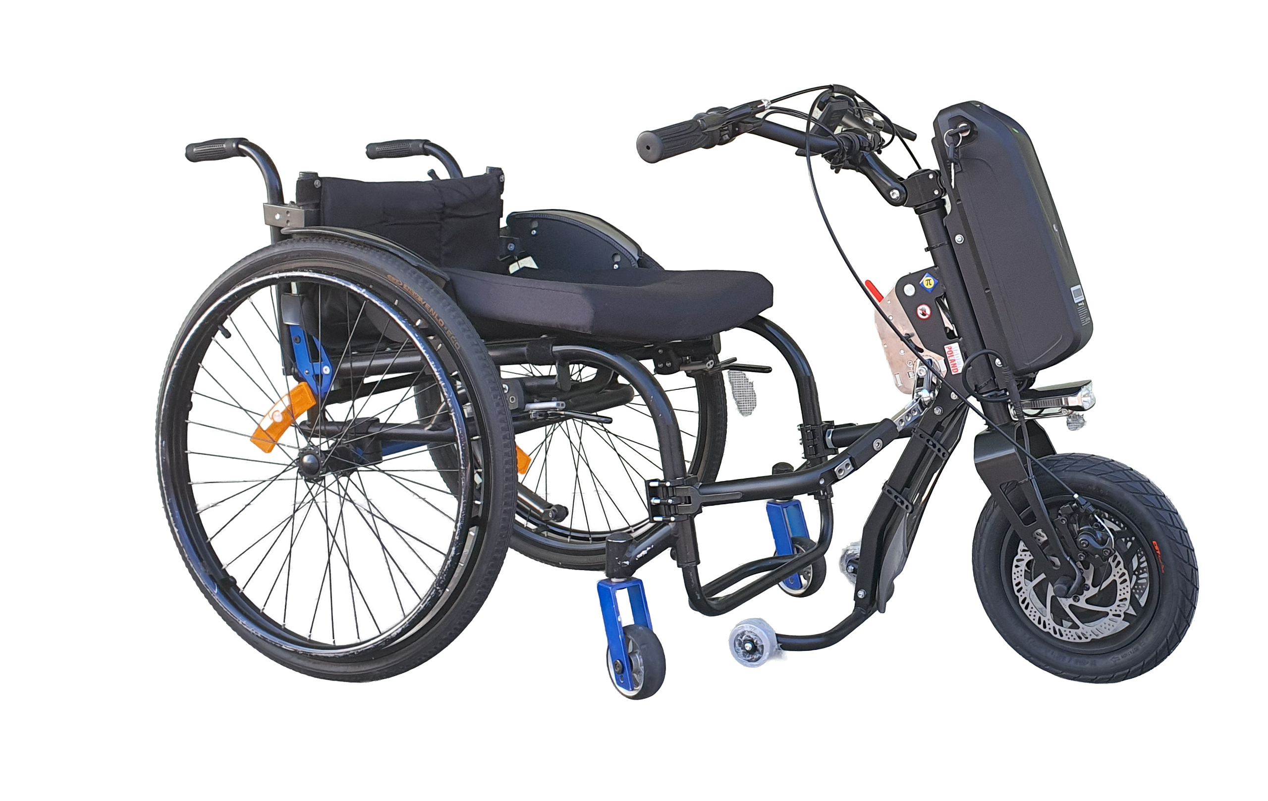 Idealne rozwiązanie dla osób posiadających wózek ręczny, napęd jest podczepiany w razie potrzeby i pozwala nam w łatwy sposób zamienić wózek ręczny w wózek elektryczny.